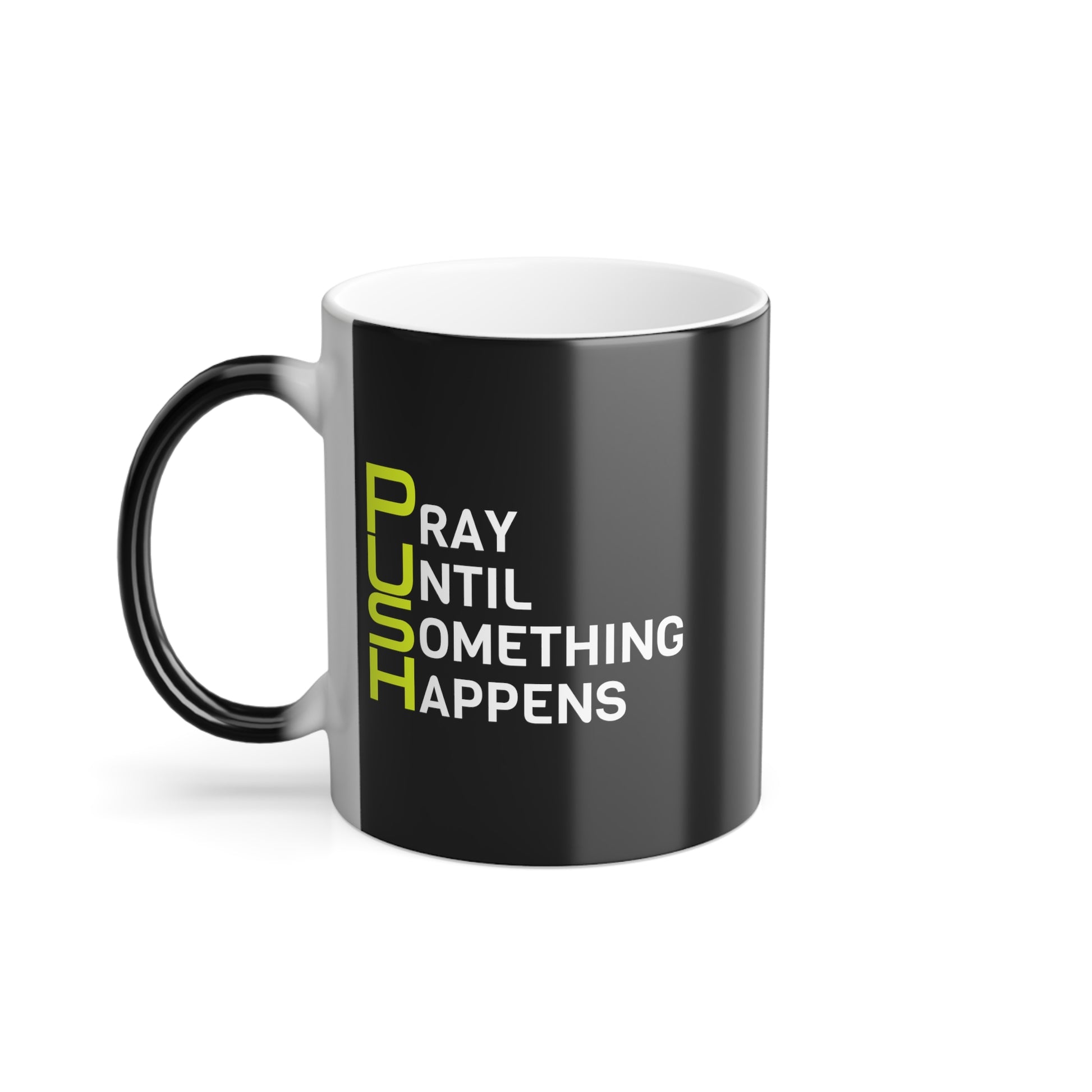 Once you pour tea or coffee this mug will remind your loved ones to Pray Until Something Happens
