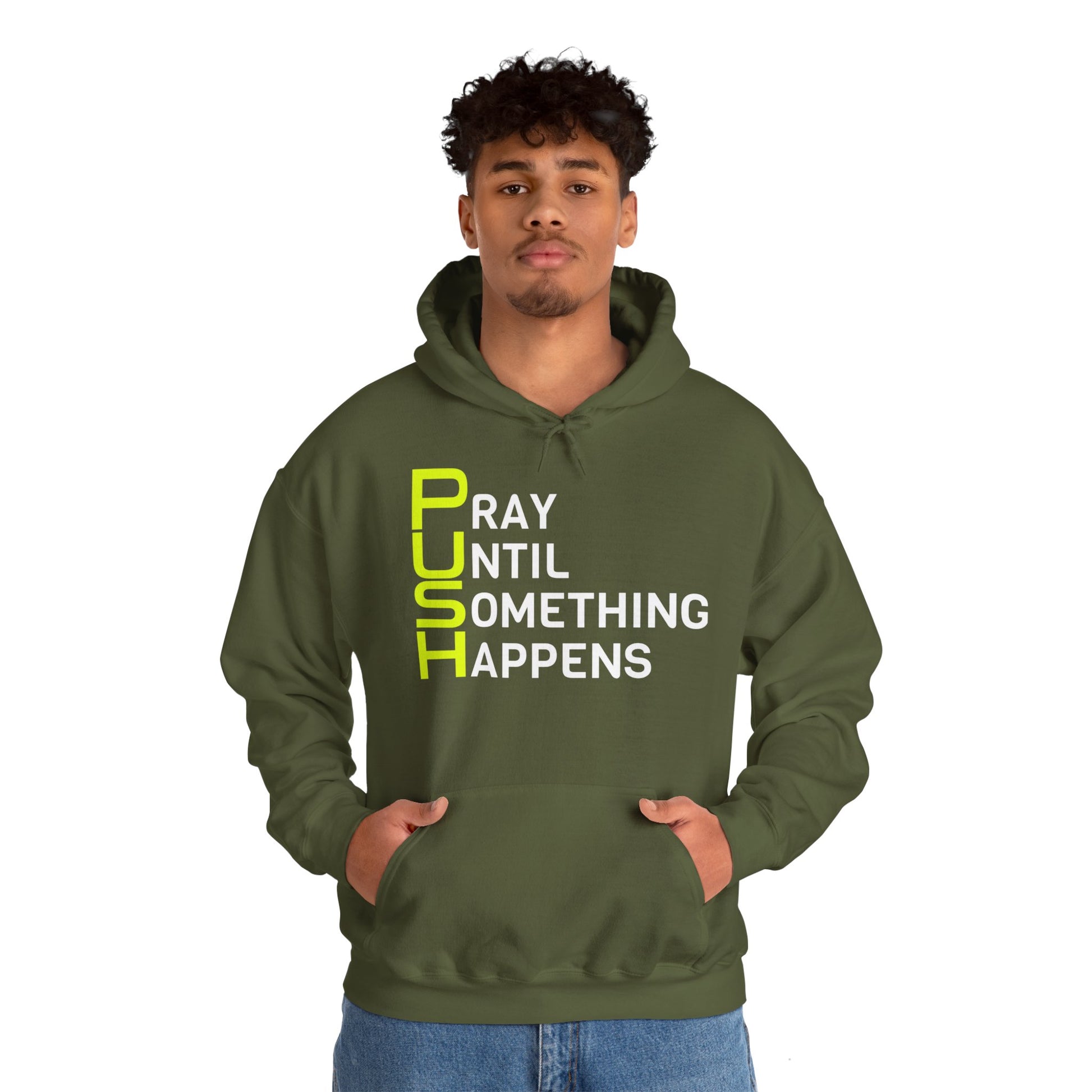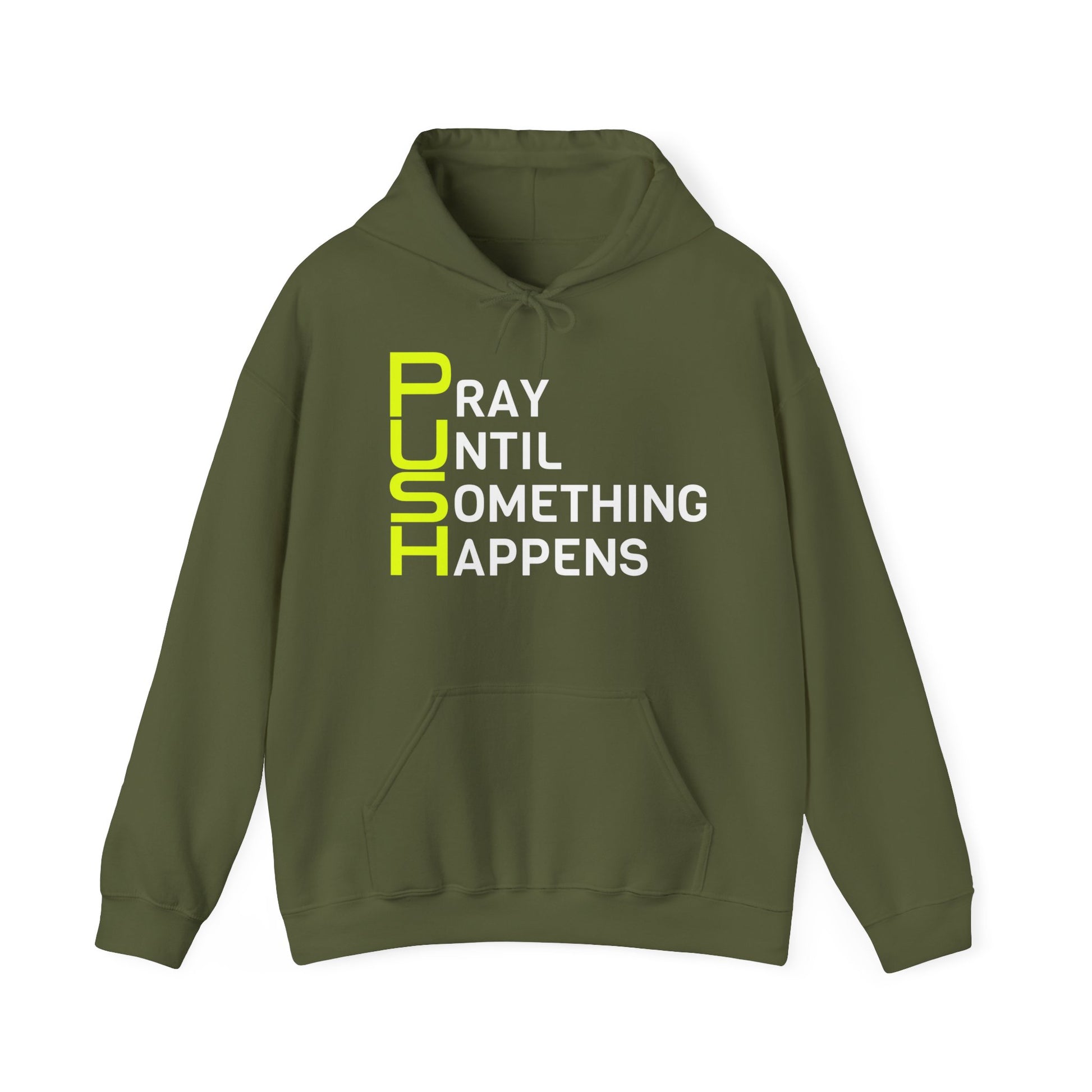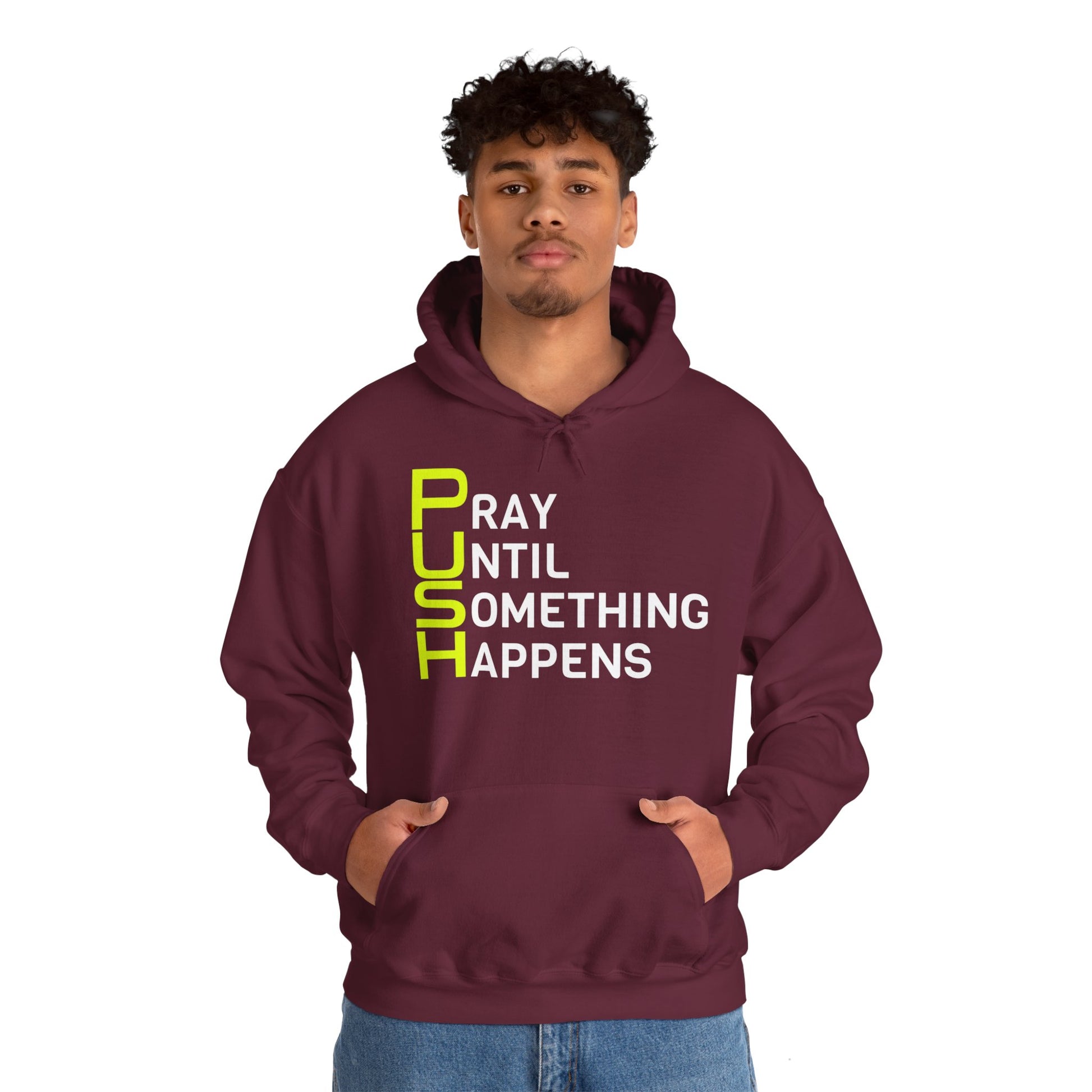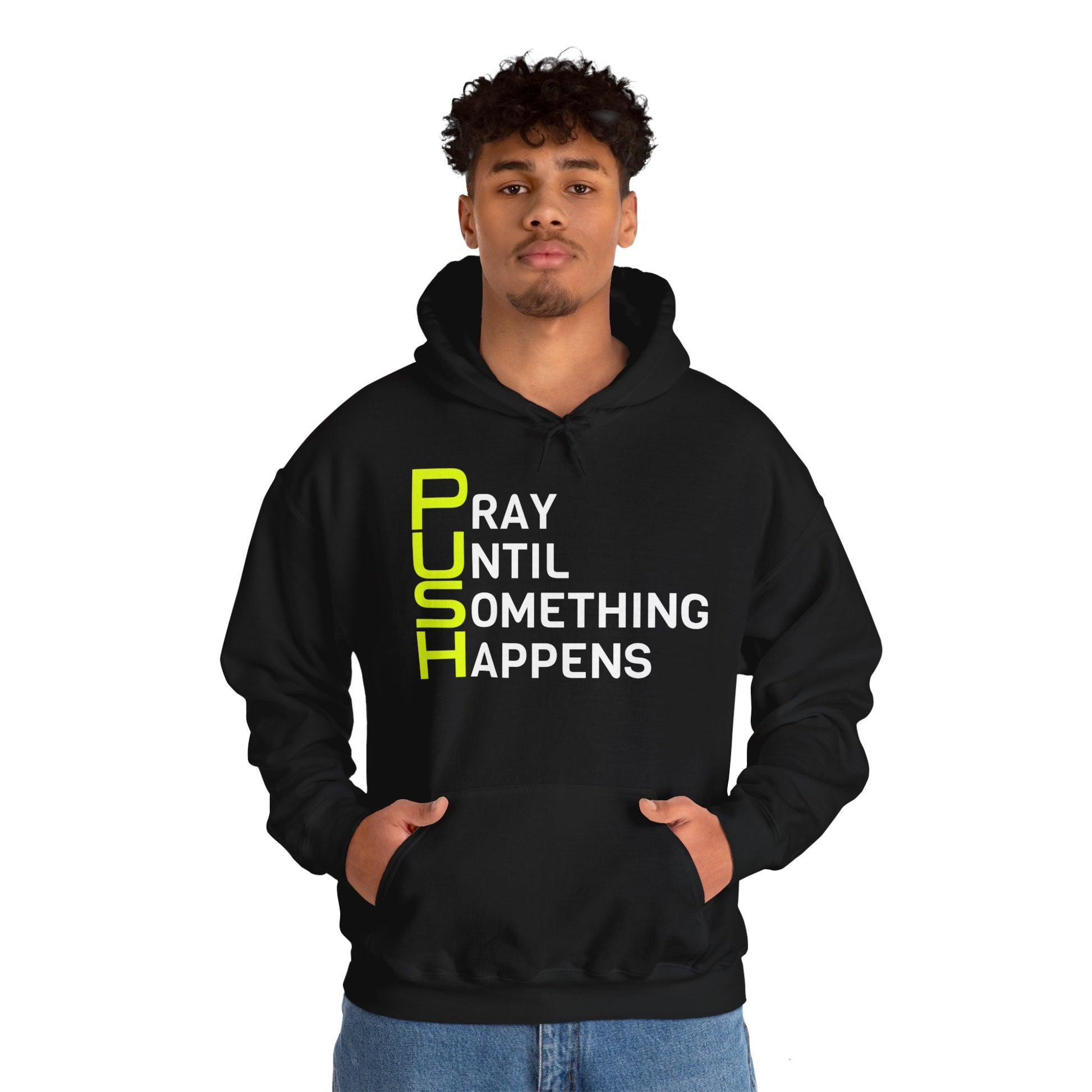 Stay inspired with our Divine Guidance Hoodie featuring the acronym P.U.S.H. – Pray Until Something Happens. Crafted for comfort and faith, it's a stylish reminder to persevere. Made with premium materials, it's a wardrobe essential. Order now for divine inspiration.